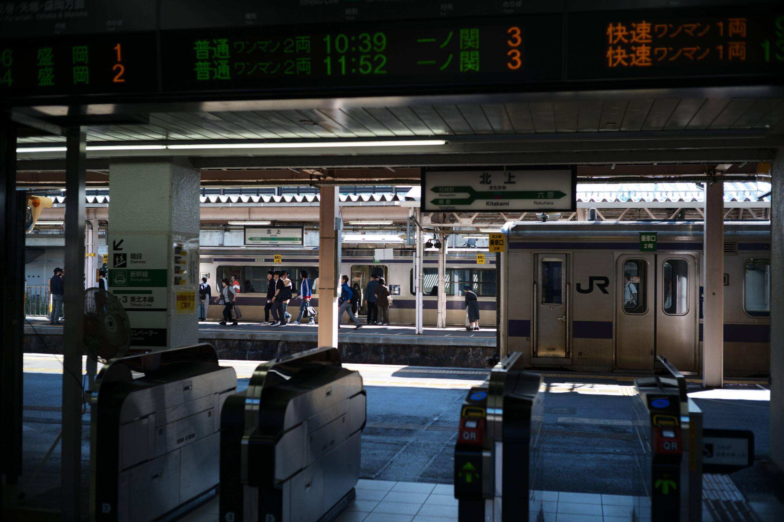駅の地上ホームにある改札を抜けて、目の前に1番線という光景。かつてはどこでも見られたけど、最近では減ってきているように感じられます。この日は休日なのに、学生も結構多く乗っていたみたい。