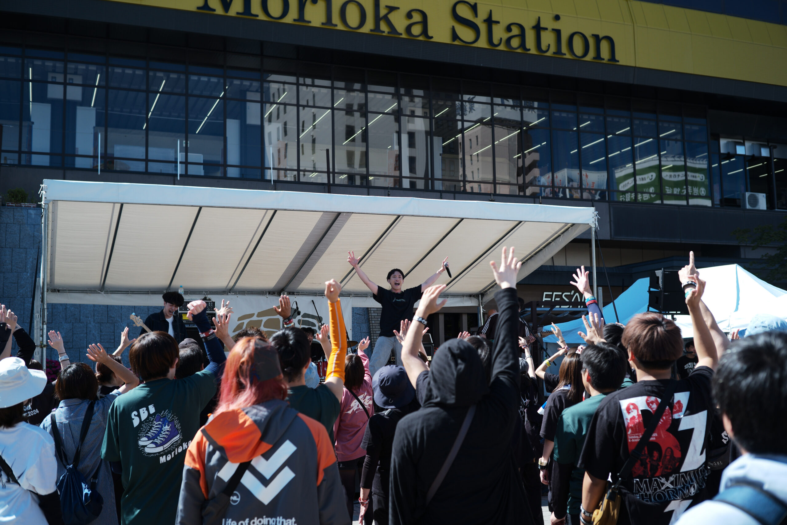 盛岡駅に到着して、駅舎の外にでたら爆音で音楽が聞こえてきた。ちょうど盛岡市内の複数会場で開催するフェスの日だったようで、この後も街なかでライブキッズを多々目撃することになる。