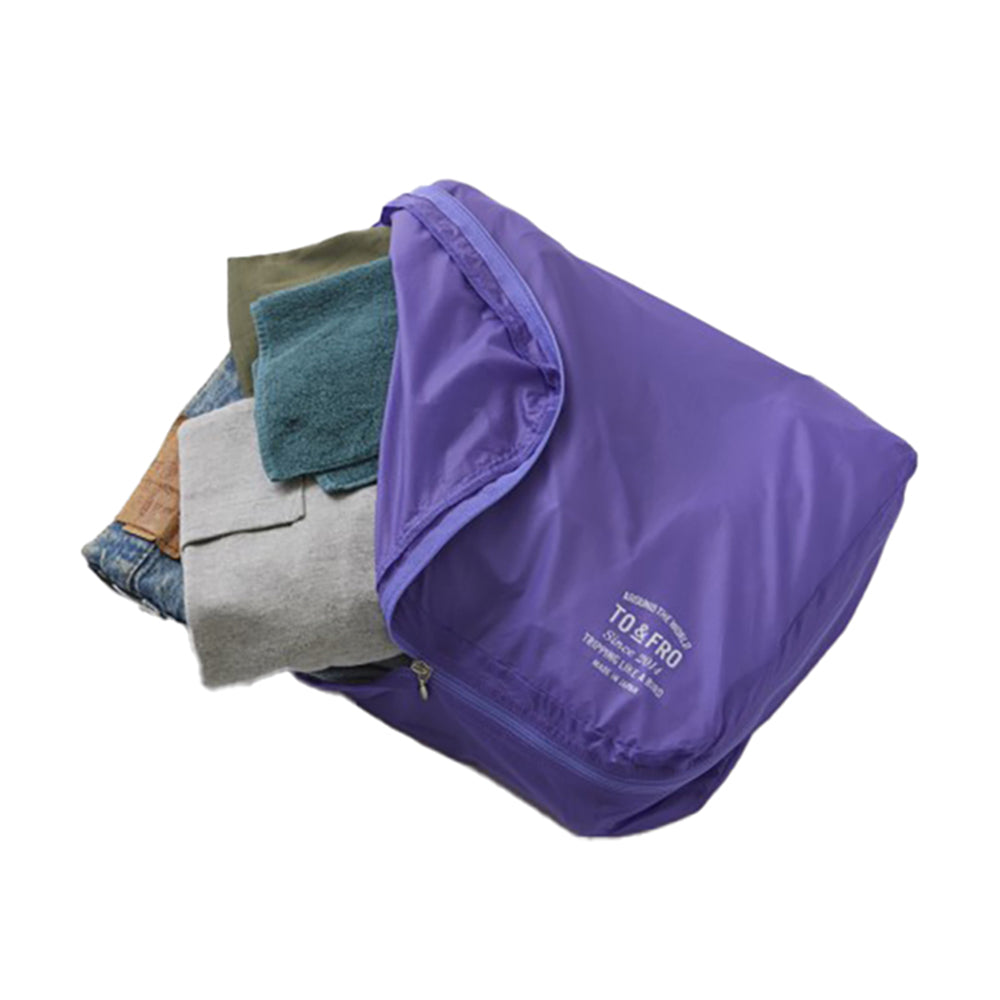 洋服をコンパクトに纏めるのに使っているのがTO&FROの”オーガナイザー“という商品。薄くて軽いのにわりと伸縮性もあり、ここに入るだけしか荷物を持たないという選択にも一役買ってくれています。